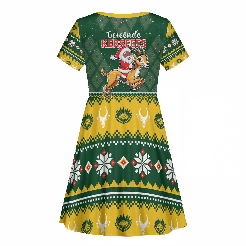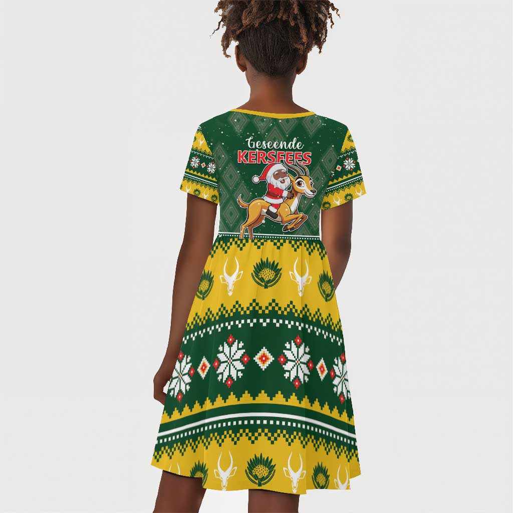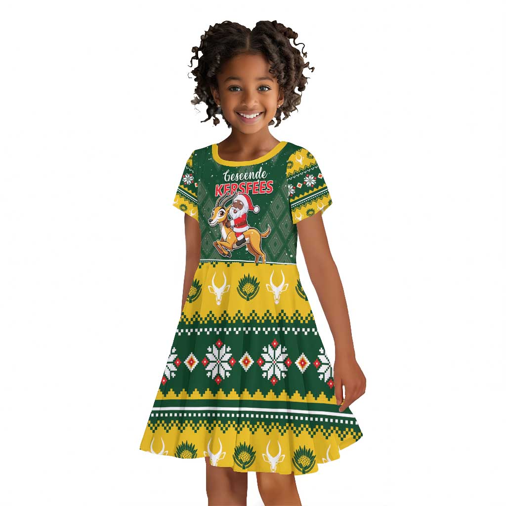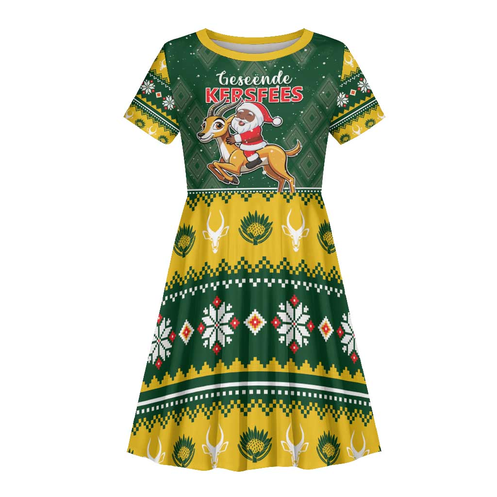 South Africa Christmas Kid Short Sleeve Dress Funny Santa Riding Springbok