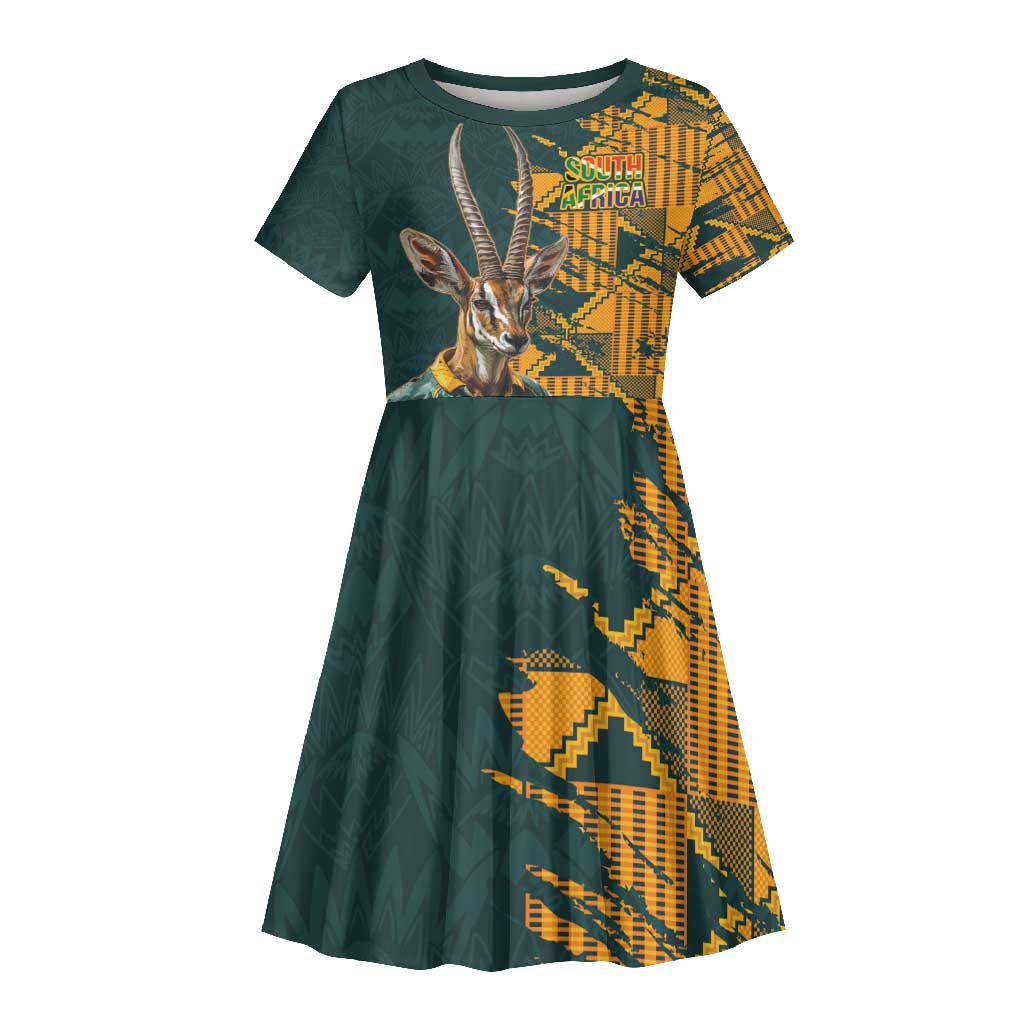 South Africa Rugby Custom Kid Short Sleeve Dress Afro Springboks Mascot Sporty Version