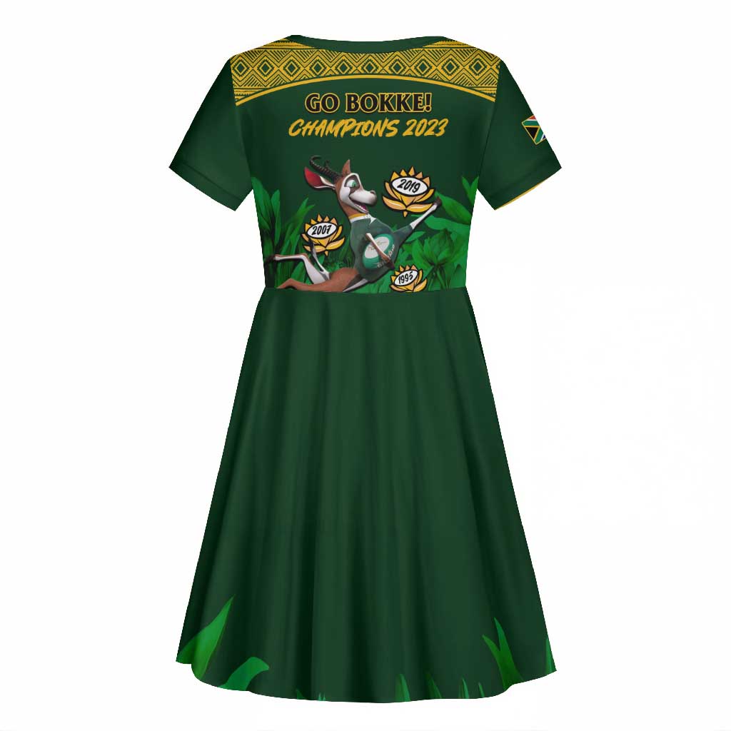 South Africa Rugby Kid Short Sleeve Dress Go Bokke World Cup Champions History
