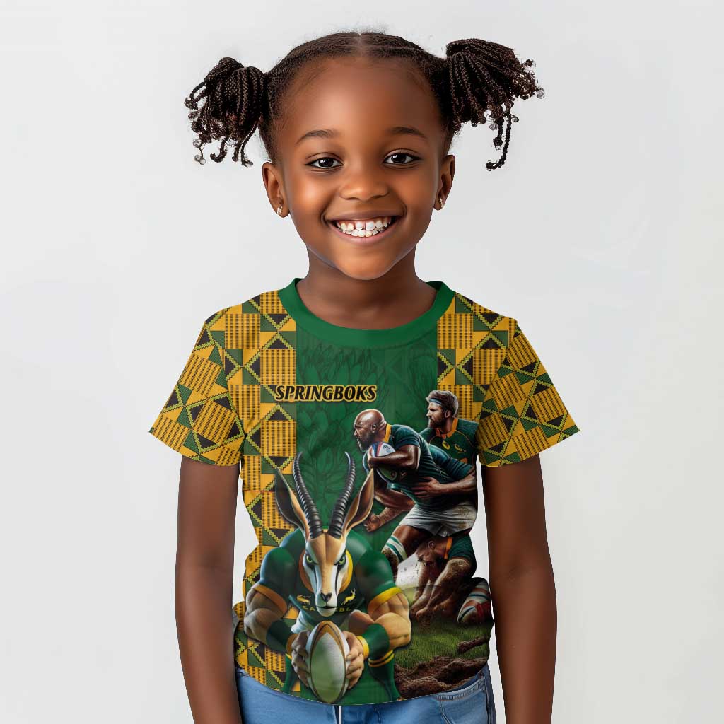 South Africa Rugby Kid T shirt - Springbok Mascot, Players Fighting for Victory