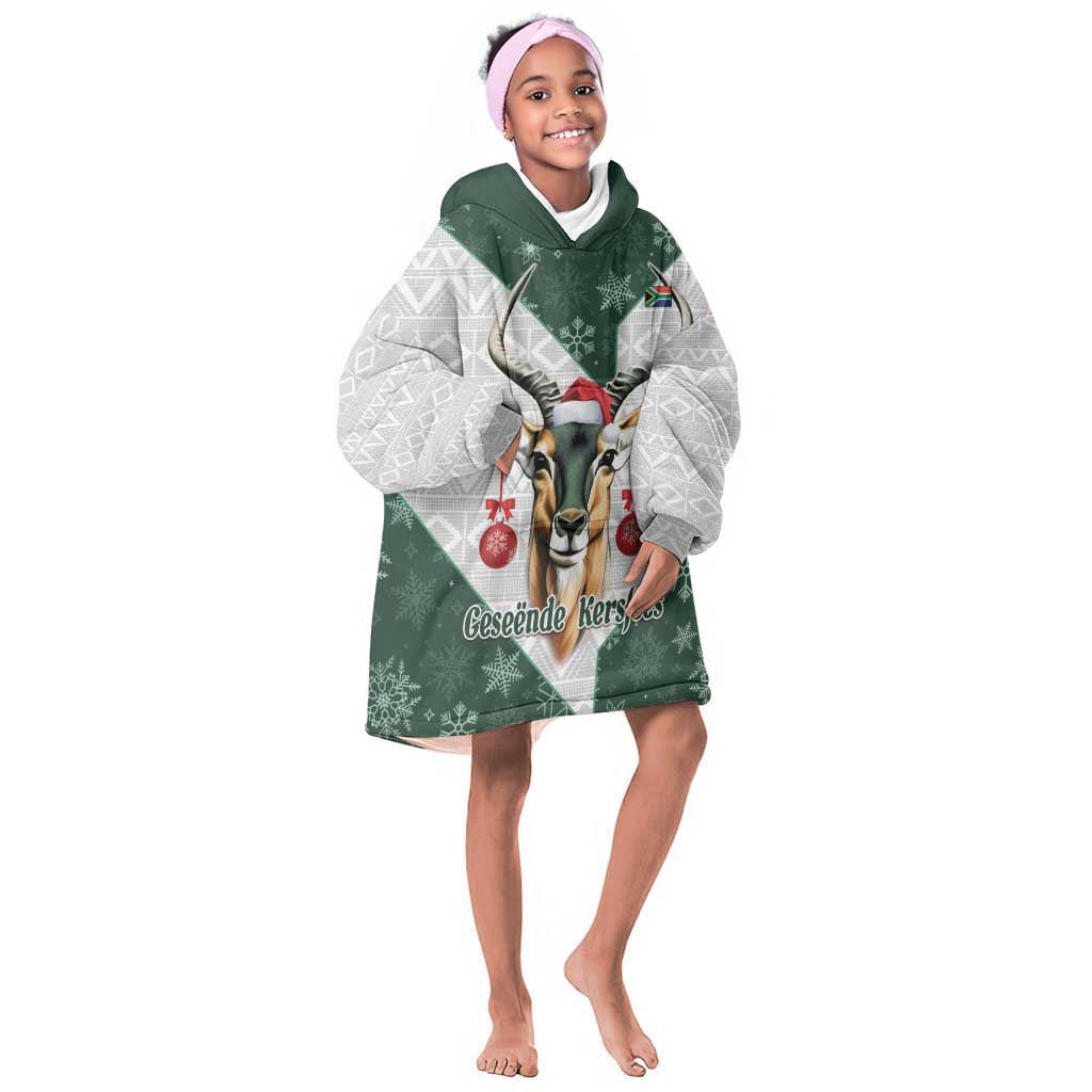 South Africa Springboks Christmas Kid Wearable Blanket Hoodie Bokke Santa - Geseende Kersfees