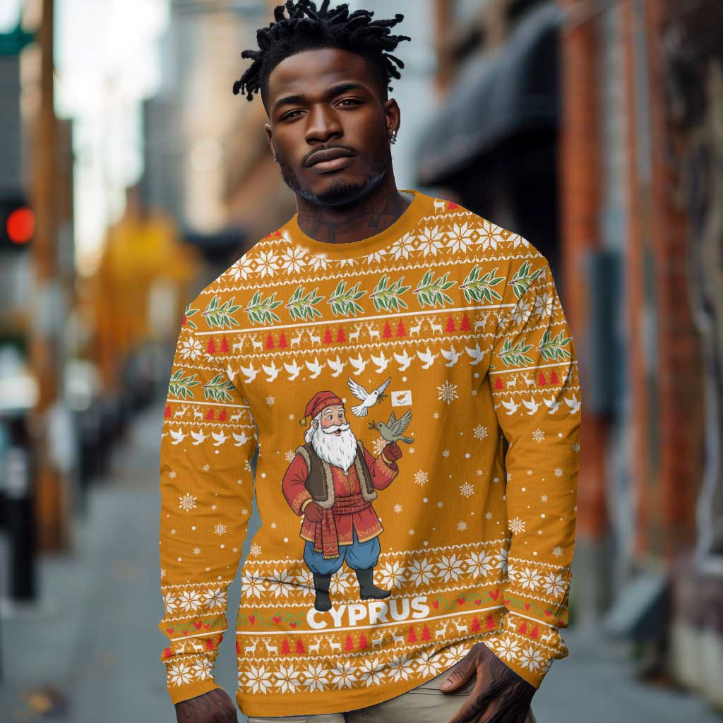 Cyprus Christmas Long Sleeve Shirt Santa Holding Doves Olive Branch Snowflakes