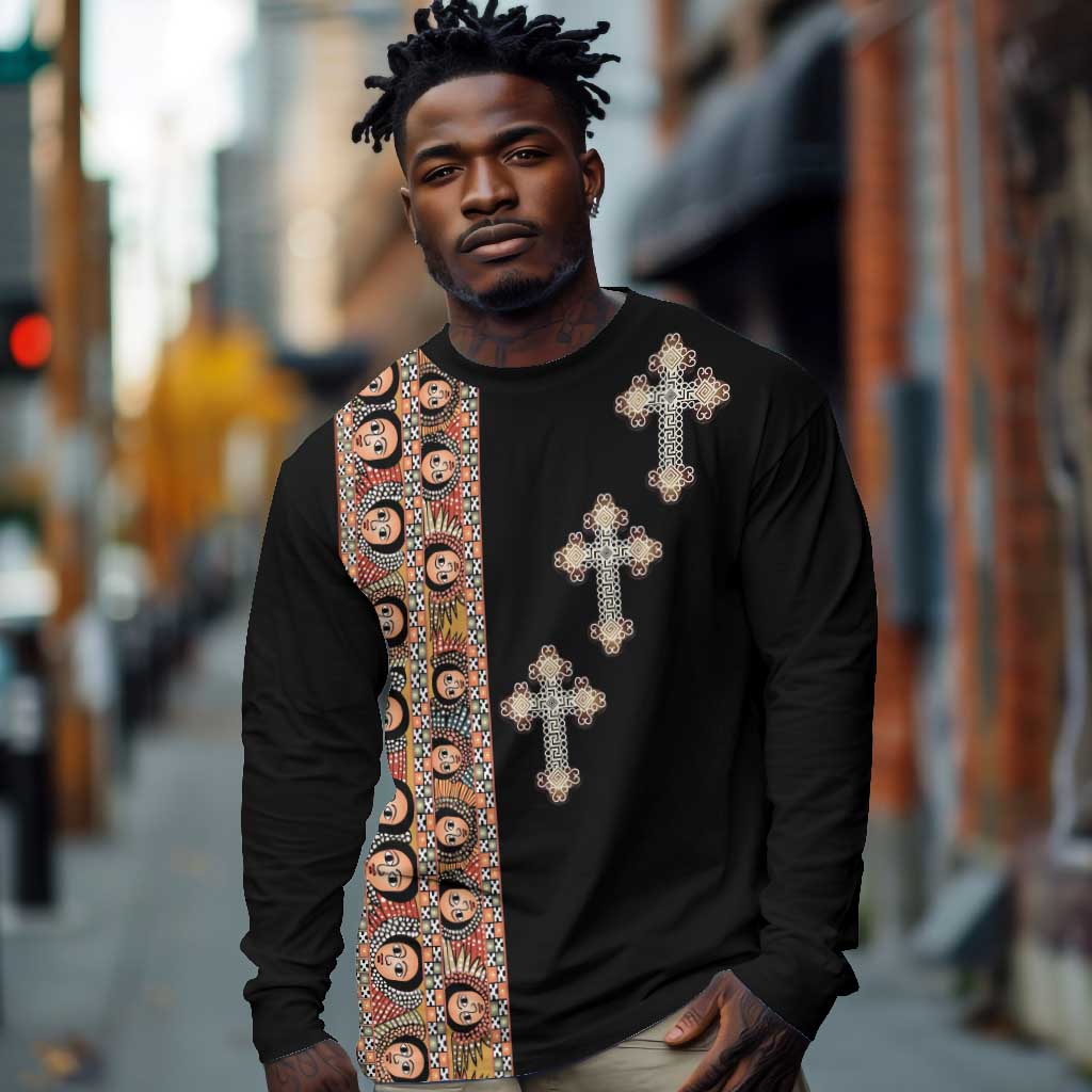 Ethiopia Angels Tilet With Cross Long Sleeve Shirt Black Color