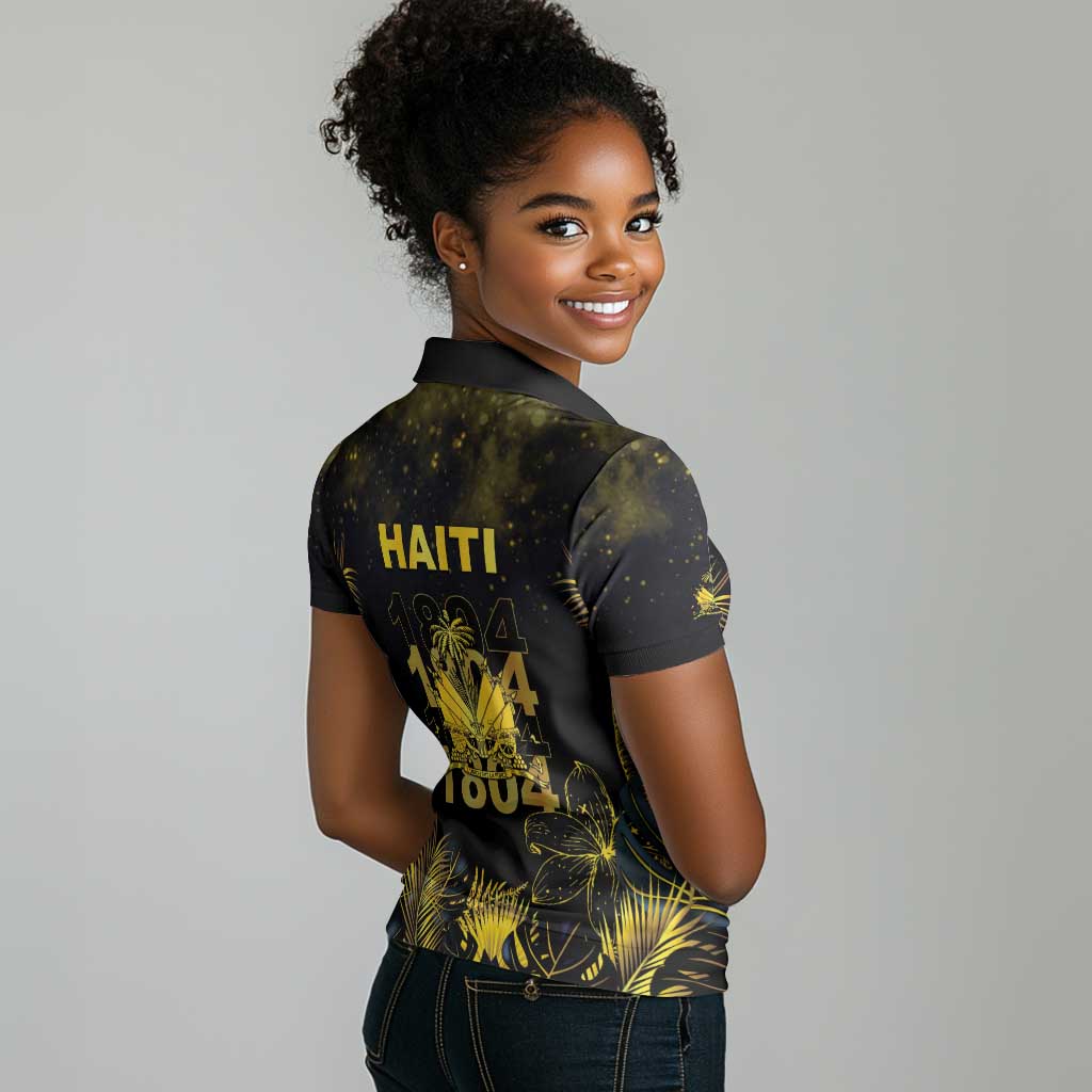 Haiti 1804 Women Polo Shirt Gold Tropical Leaves And Coat Of Arms LT05