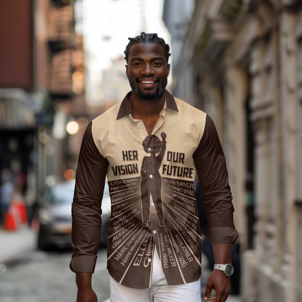 Her Vision Our Future Long Sleeve Button Shirt Influential Black Women Inventors and Pioneers