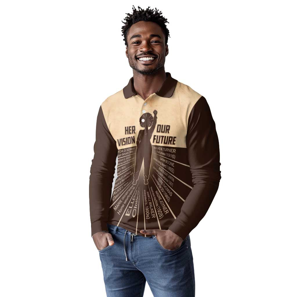 Her Vision Our Future Long Sleeve Polo Shirt Influential Black Women Inventors and Pioneers