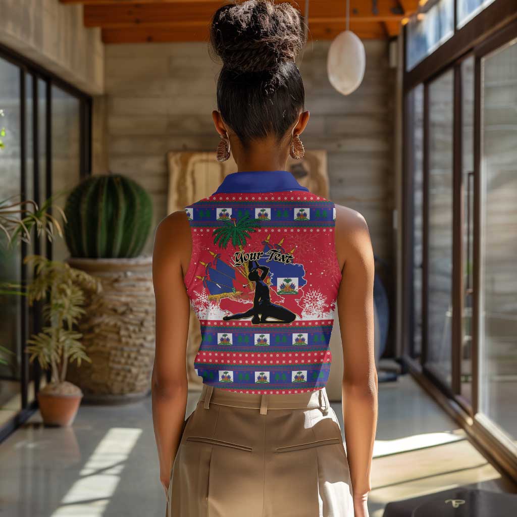 Personalized Ayiti Jwaye Nwel Women Sleeveless Polo Shirt Haiti Merry Christmas
