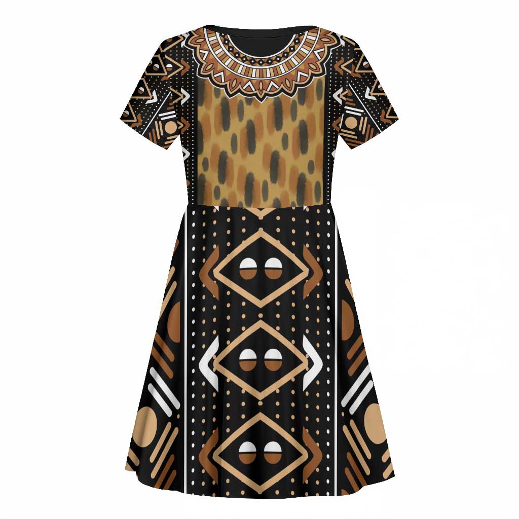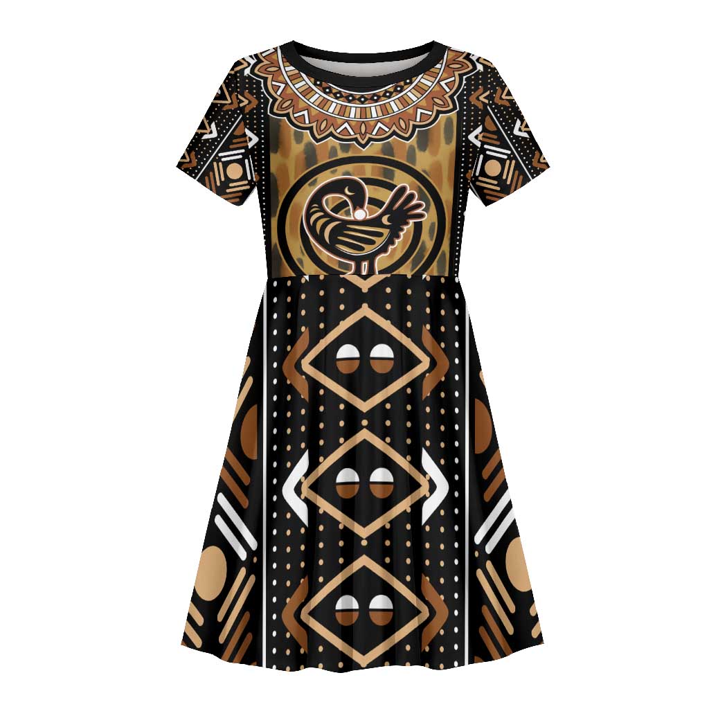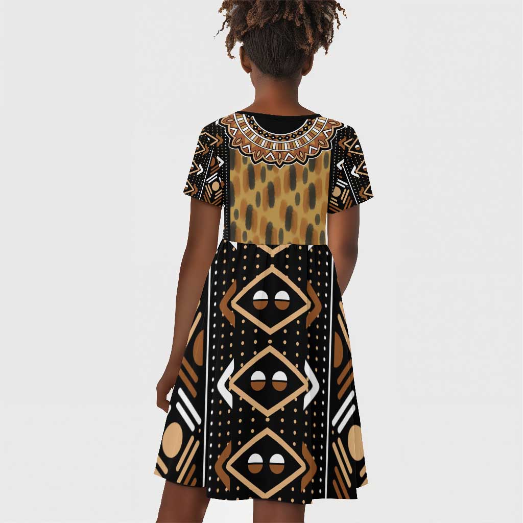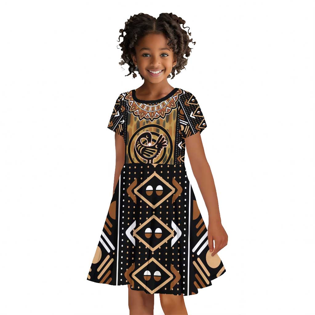 Printed Mud Cloth and Adinkra Symbol Kid Short Sleeve Dress
