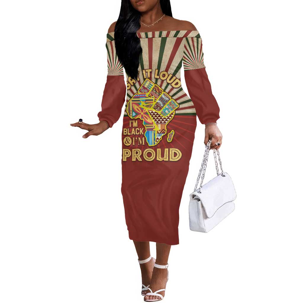 Proud African Off The Shoulder Long Sleeve Dress - Hand Up Africa Map Art