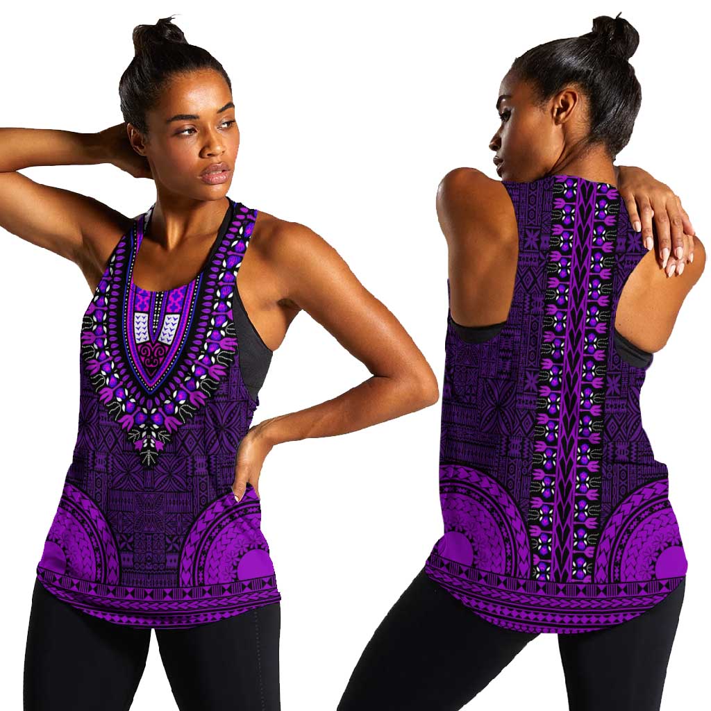 Purple Dashiki and Tapa Pattern Women Racerback Tank Africa-Polynesia Together Culture