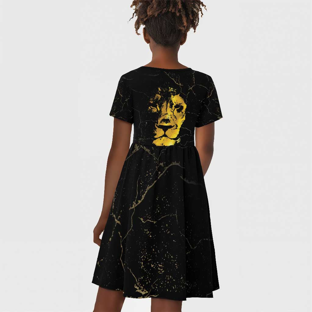 Reggae King Marley Kid Short Sleeve Dress Gold Lion