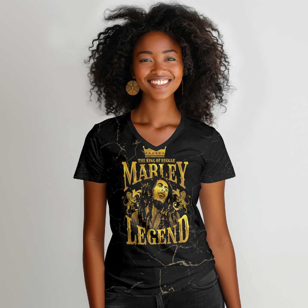 Reggae King Marley Women V-Neck T-Shirt Gold Lion