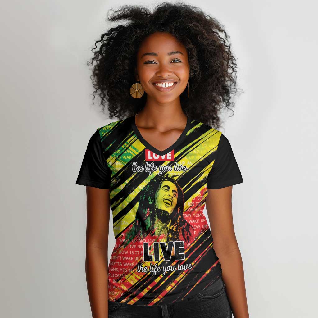 Reggae Legend Women V-Neck T-Shirt Love The Life You Live Live The Life You Love
