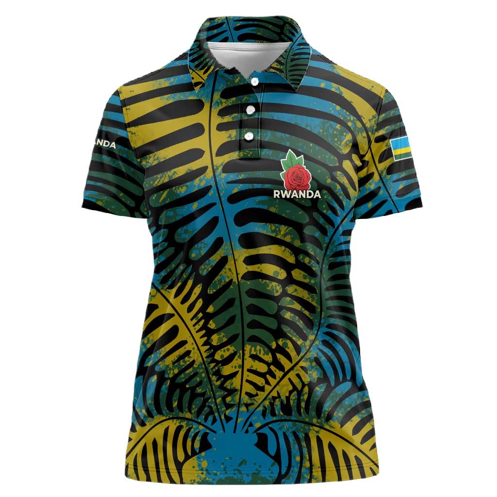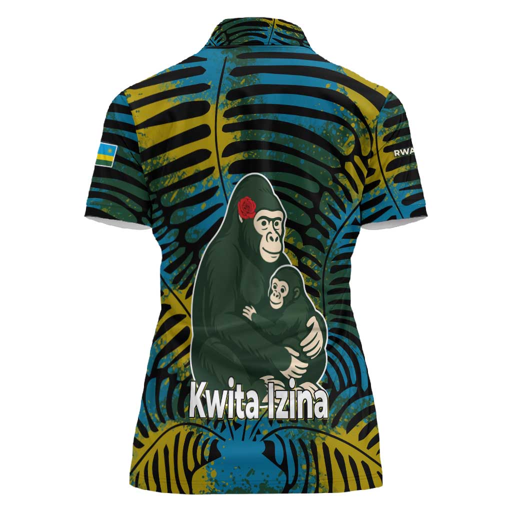 Rwanda Women Polo Shirt with Gorilla Family Kwita Izina Leaf Jungle Spirit