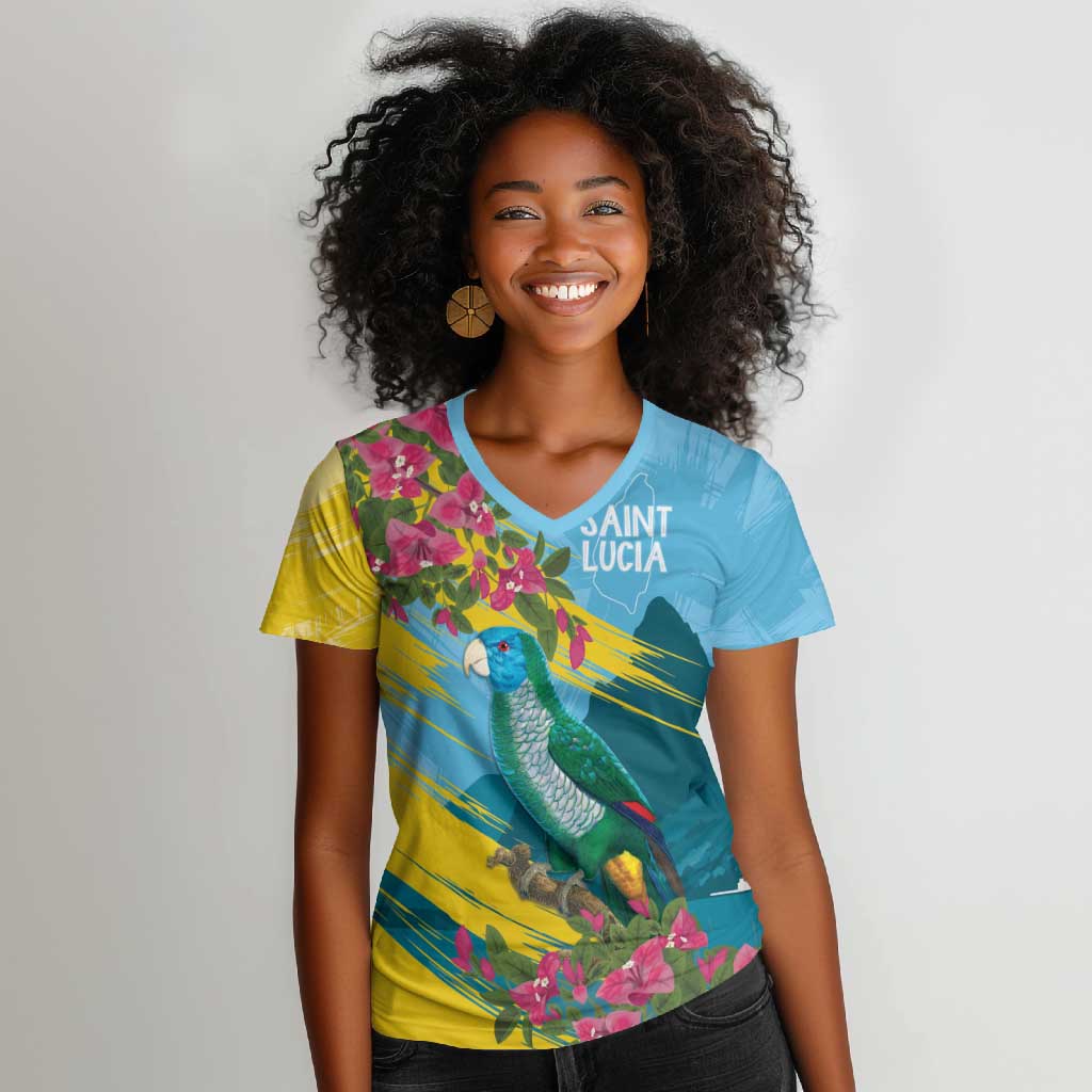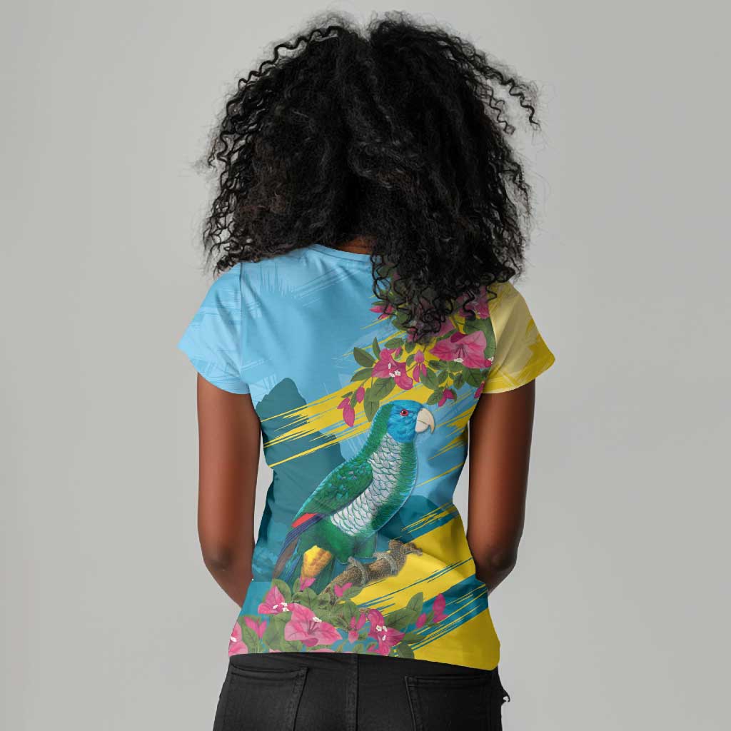 Saint Lucia Afro Women V-Neck T-Shirt Tropical Vibes