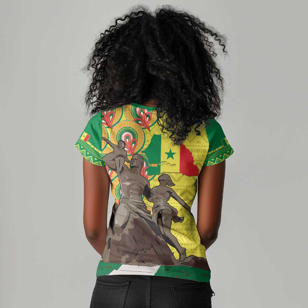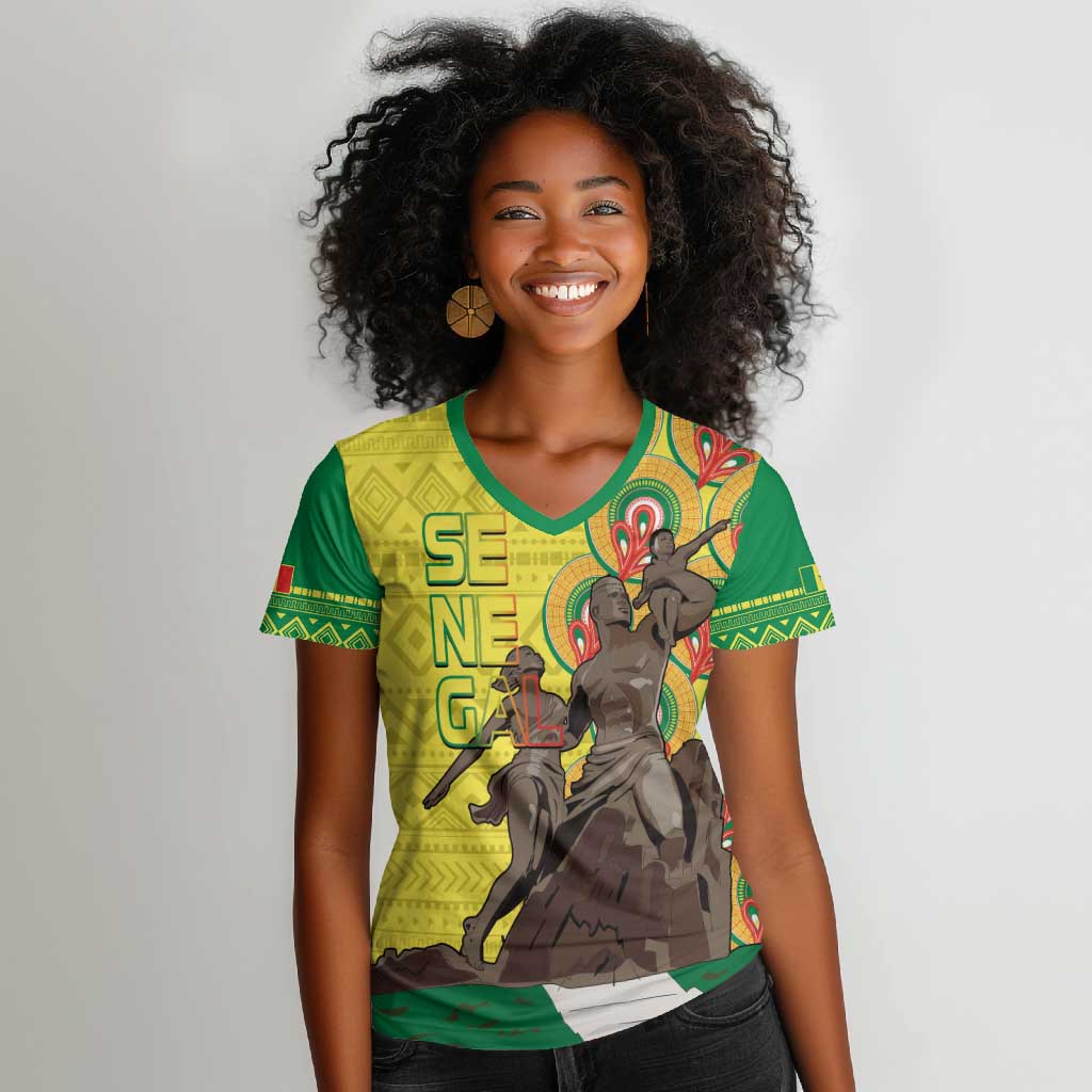 Senegal Monument de la Renaissance Women V-Neck T-Shirt Africaine Ankara Pattern