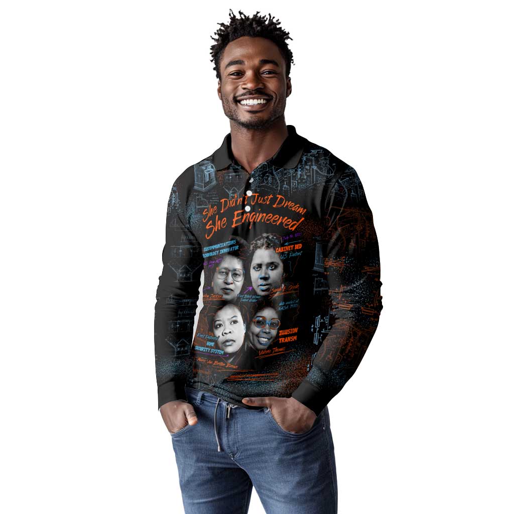 She Didn't Just Dream She Engineered Long Sleeve Polo Shirt Trailblazing Black Women Innovators