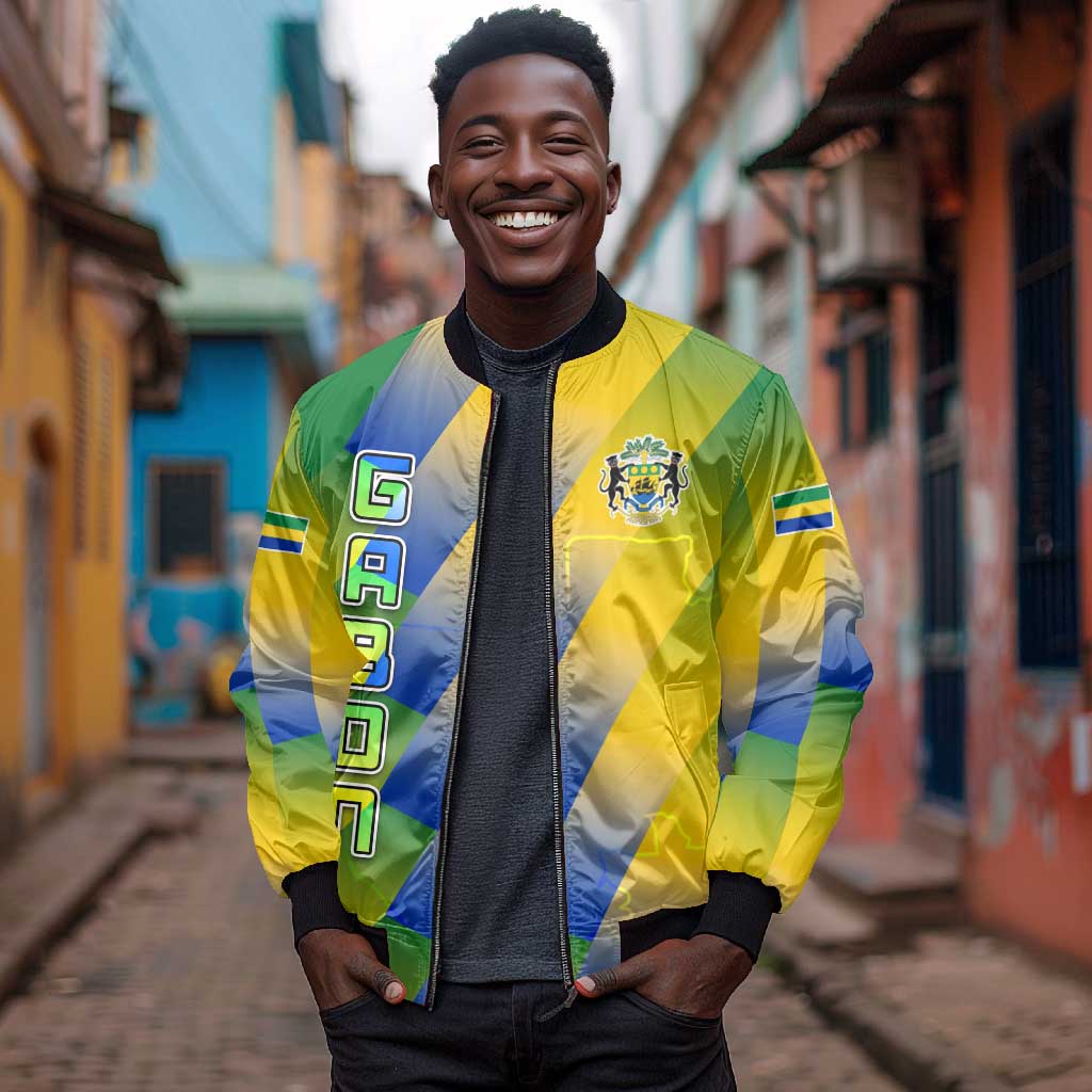 Gabon Flag Bomber Jacket - National Coat of Arms and Vertical Design