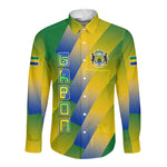 Gabon Flag Long Sleeve Button Shirt - National Coat of Arms and Vertical Design