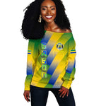 Gabon Flag Off Shoulder Sweater - National Coat of Arms and Vertical Design