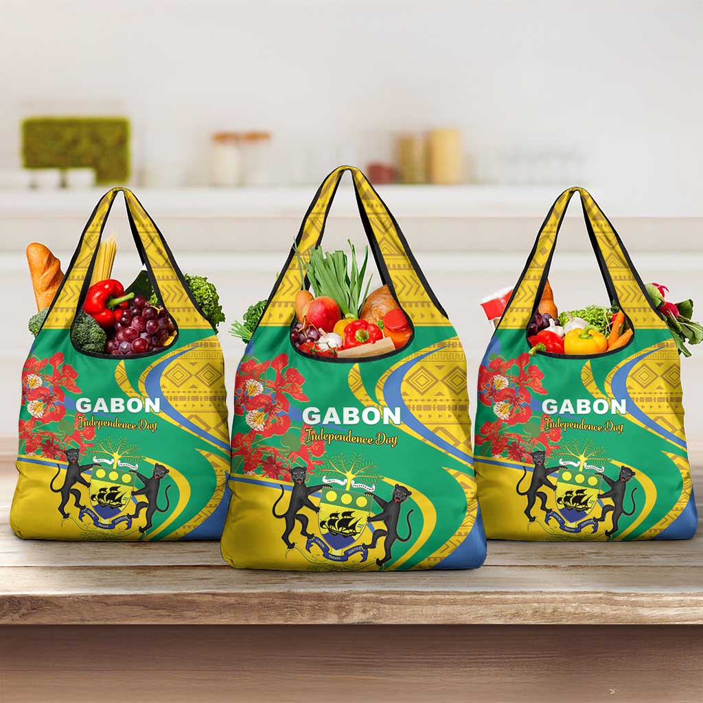 Gabon Independence Day Grocery Bag Gabonaise Flamboyant African Pattern