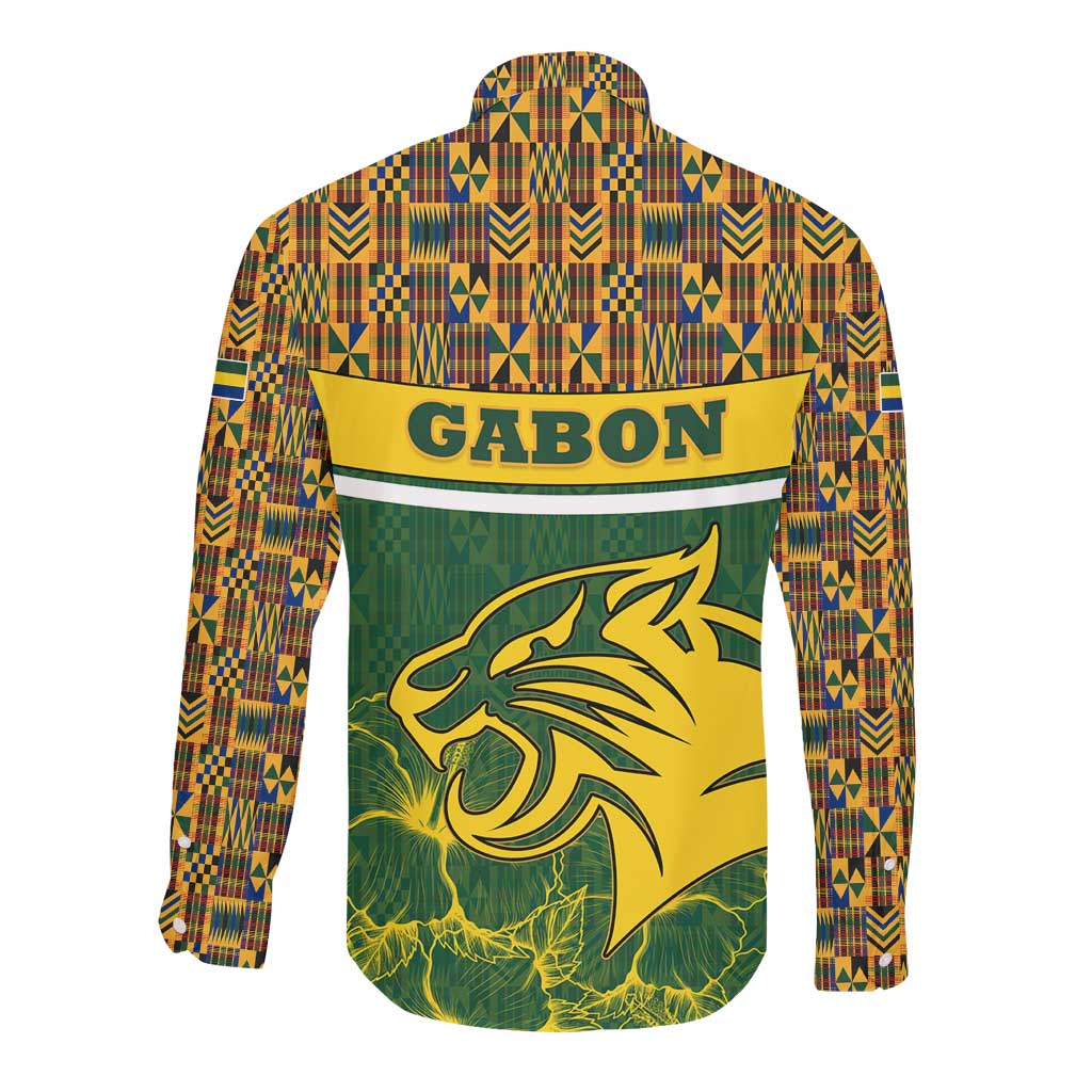 Gabon Long Sleeve Button Shirt - Tribal Print and Fierce Panther Graphic in National Flag Colors
