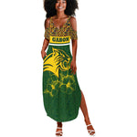 Gabon Summer Maxi Dress - Tribal Print and Fierce Panther Graphic in National Flag Colors