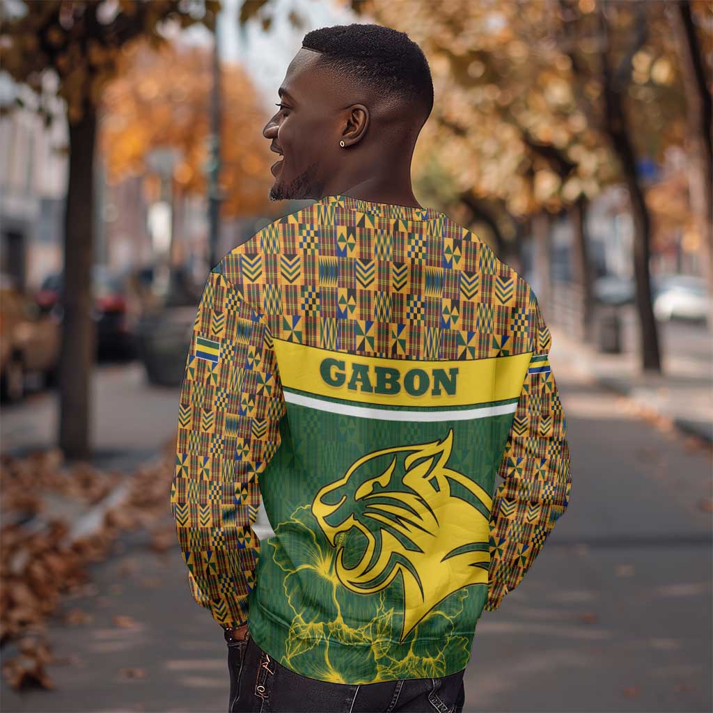 Gabon Sweatshirt - Tribal Print and Fierce Panther Graphic in National Flag Colors