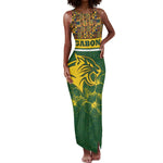 Gabon Tank Maxi Dress - Tribal Print and Fierce Panther Graphic in National Flag Colors