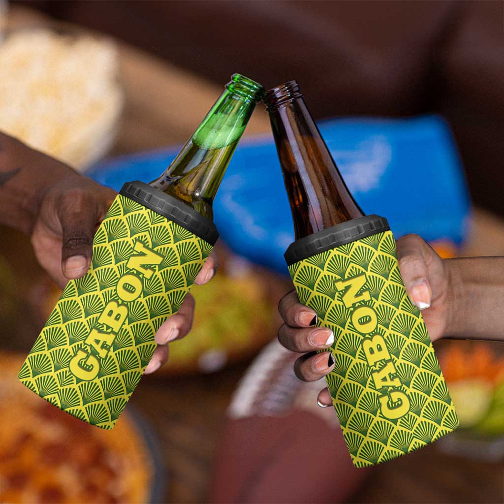 Gabon Tribal Pattern 4 in 1 Can Cooler Tumbler - National Flag Colors and Bold Text Design