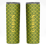 Gabon Tribal Pattern Skinny Tumbler - National Flag Colors and Bold Text Design