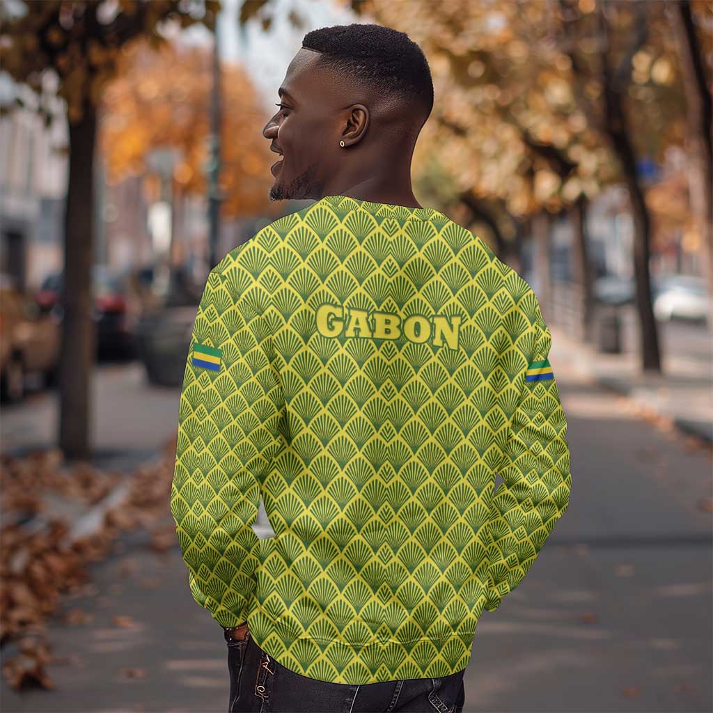 Gabon Tribal Pattern Sweatshirt - National Flag Colors and Bold Text Design