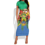 Personalised Afro Gabon Short Sleeve Bodycon Dress Gabonese Union Travail and Justice