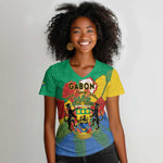 Personalised Afro Gabon Women V-Neck T-Shirt Gabonese Union Travail and Justice