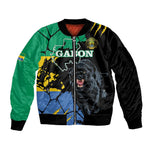 Personalized Gabon Black Panther Sleeve Zip Bomber Jacket Gabonese Map Grunge Style