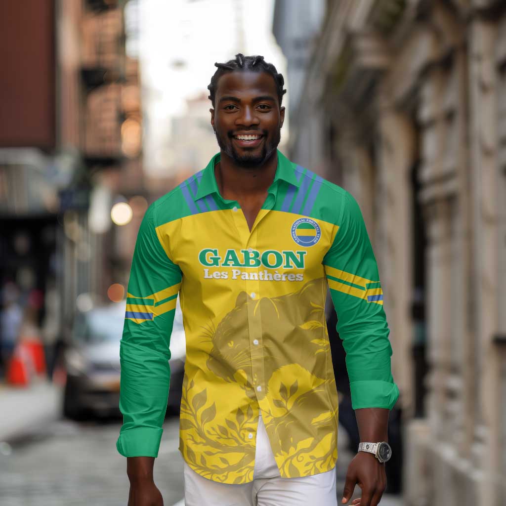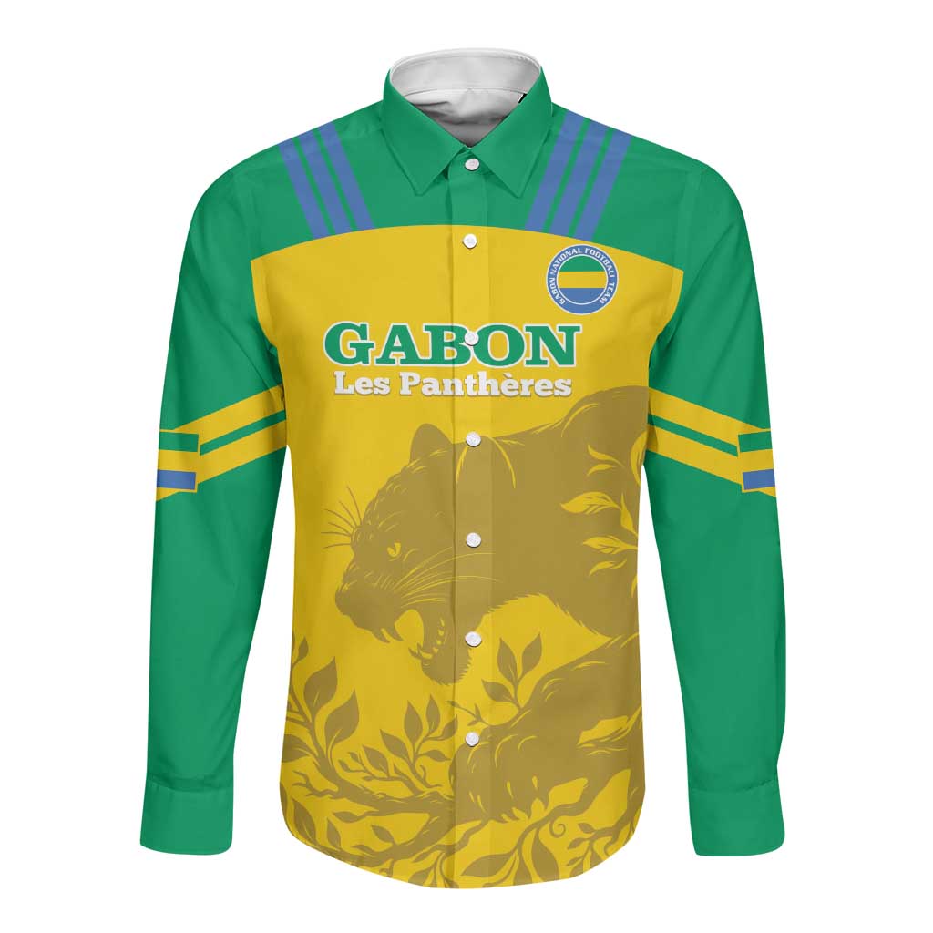 Personalized Gabon Football Long Sleeve Button Shirt Allez Les Pantheres