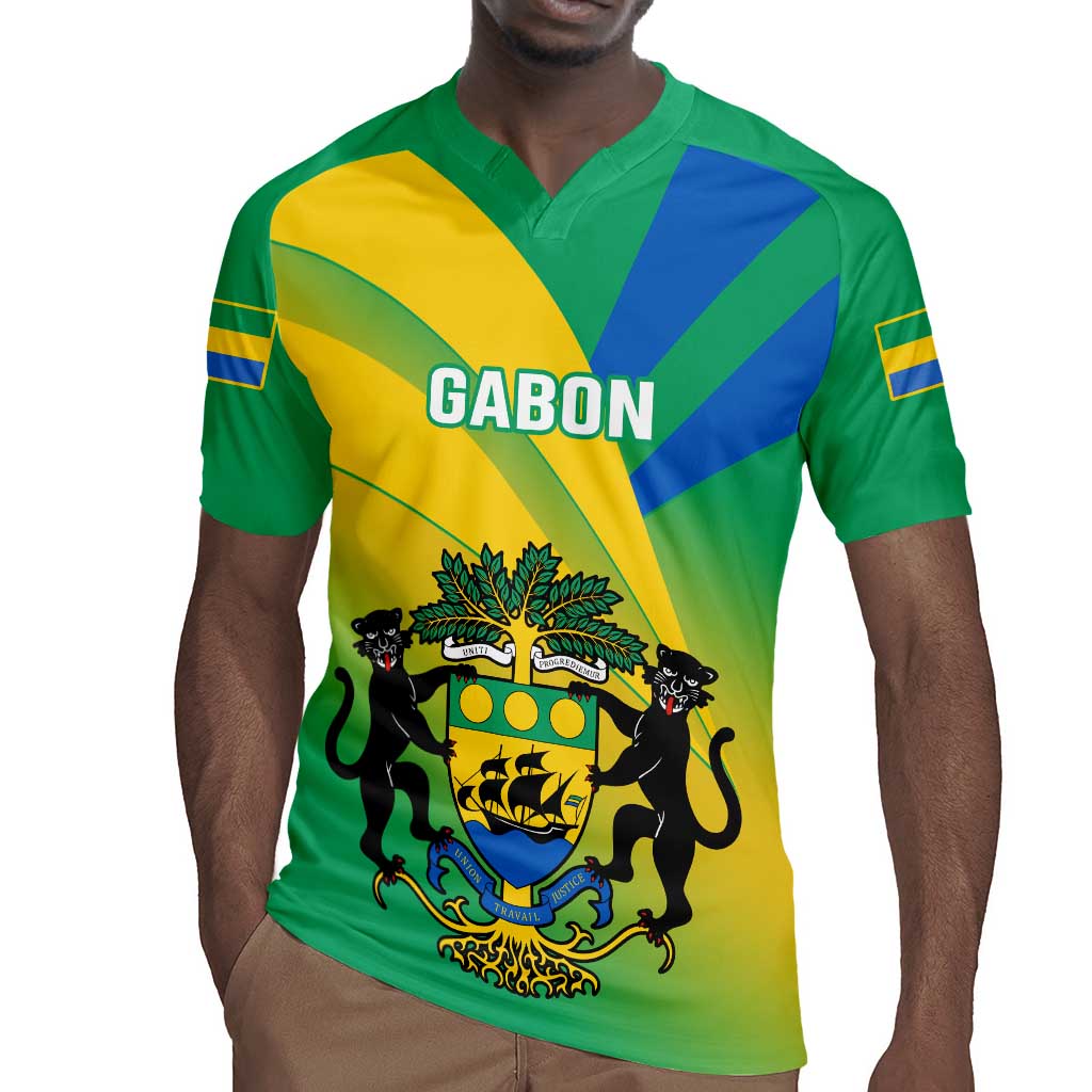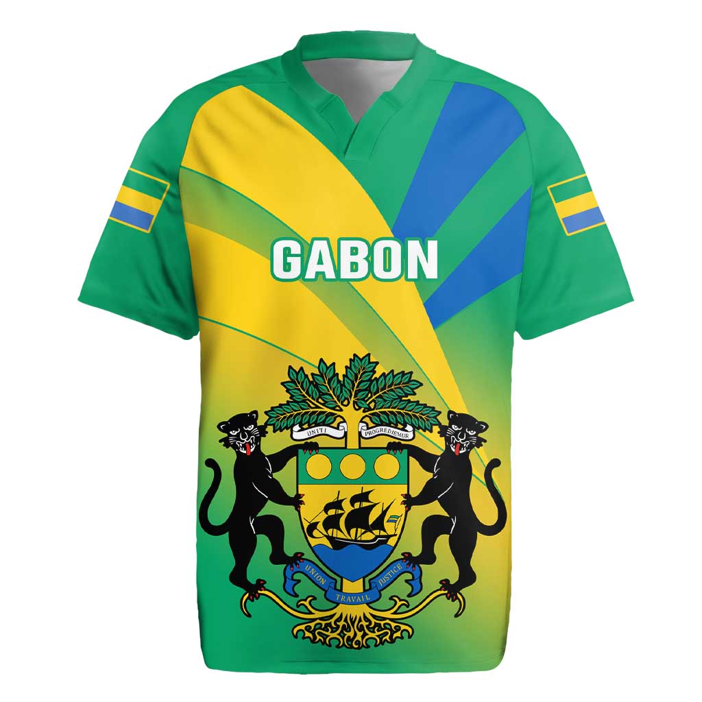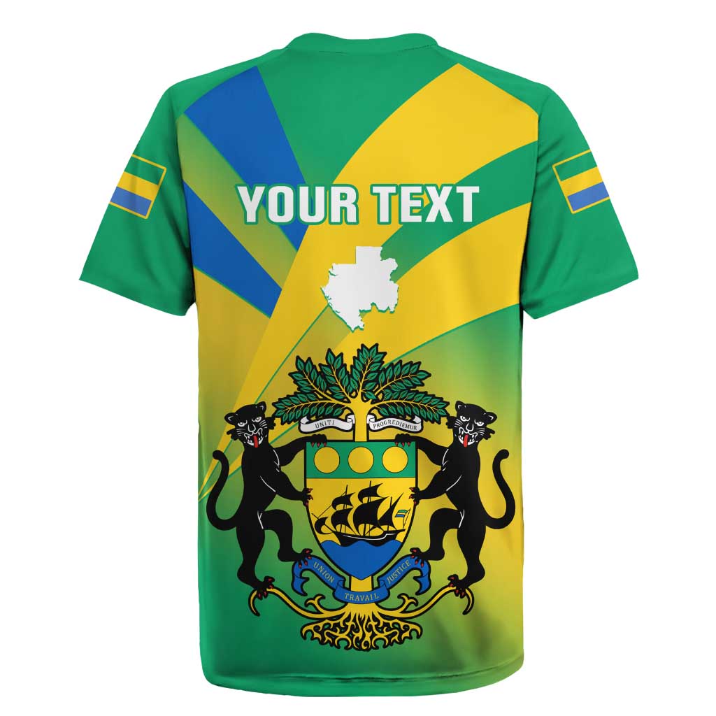Presonalised Gabon Rugby Jersey Coat Of Arms With Flag Gradient Style