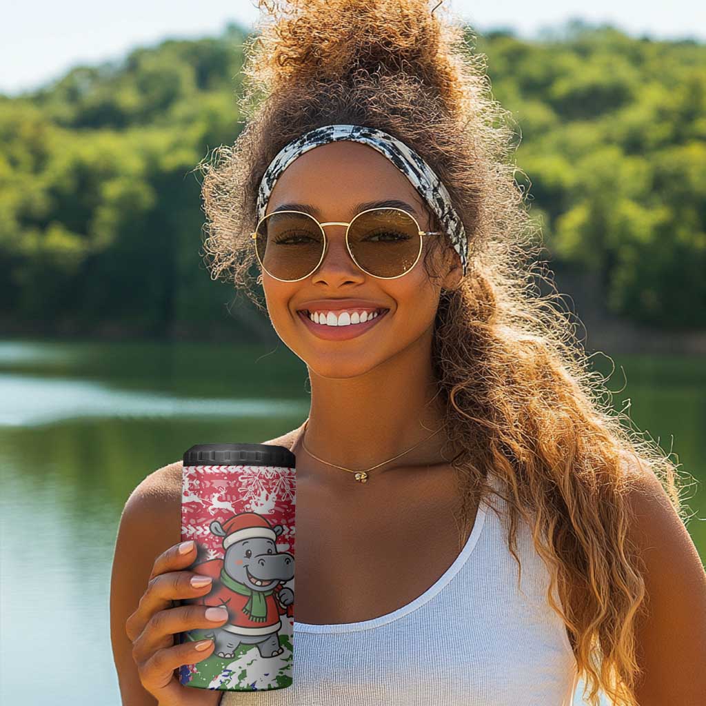 Gambia Christmas 4 in 1 Can Cooler Tumbler Santa Hippo National Coat of Arms Snowflakes and Festive Holiday