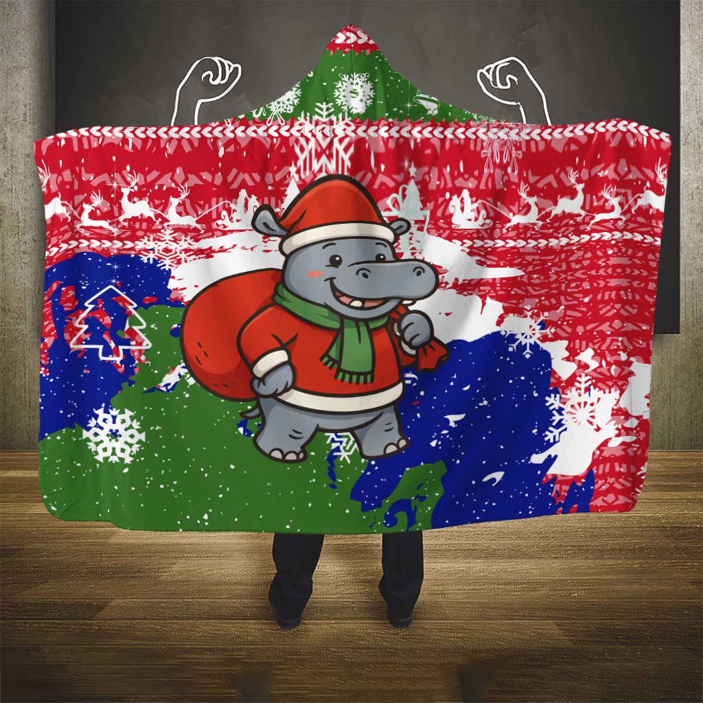 Gambia Christmas Hooded Blanket Santa Hippo National Coat of Arms Snowflakes and Festive Holiday
