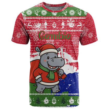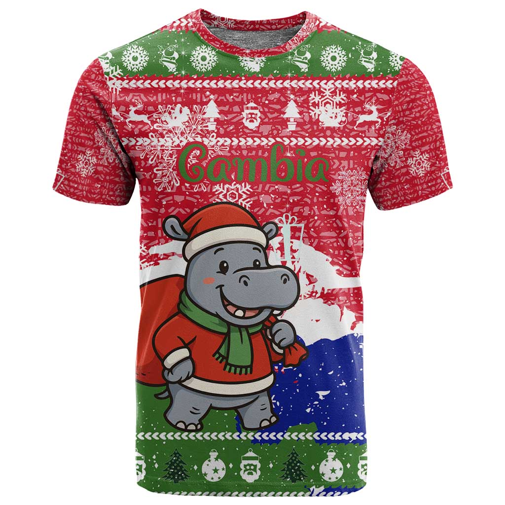 Gambia Christmas T shirt Santa Hippo National Coat of Arms Snowflakes and Festive Holiday TS04