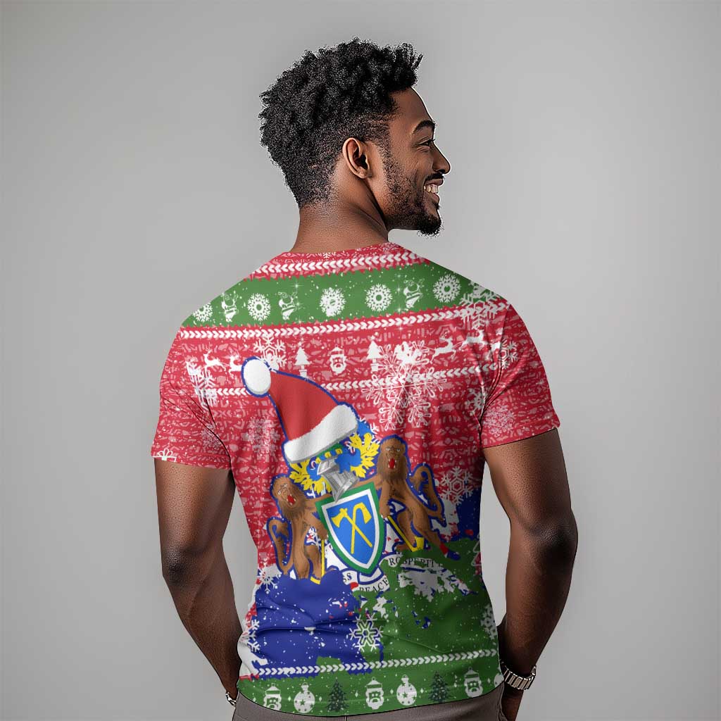 Gambia Christmas T shirt Santa Hippo National Coat of Arms Snowflakes and Festive Holiday