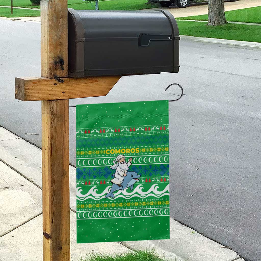 Comoros Christmas Garden Flag Santa Riding Dolphin Ocean Waves Crescent Moon