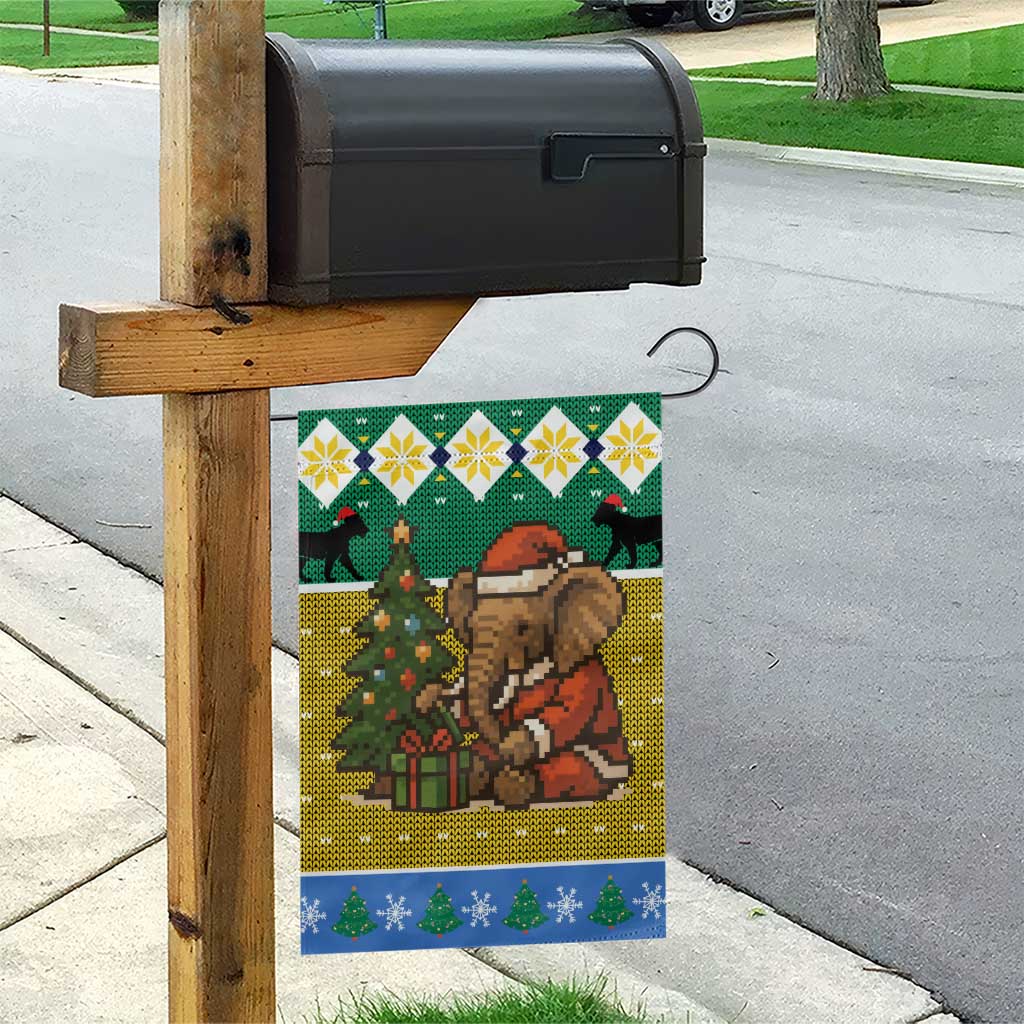 Gabon Christmas Garden Flag Pixel Art Elephant Santa Christmas Tree and Flag
