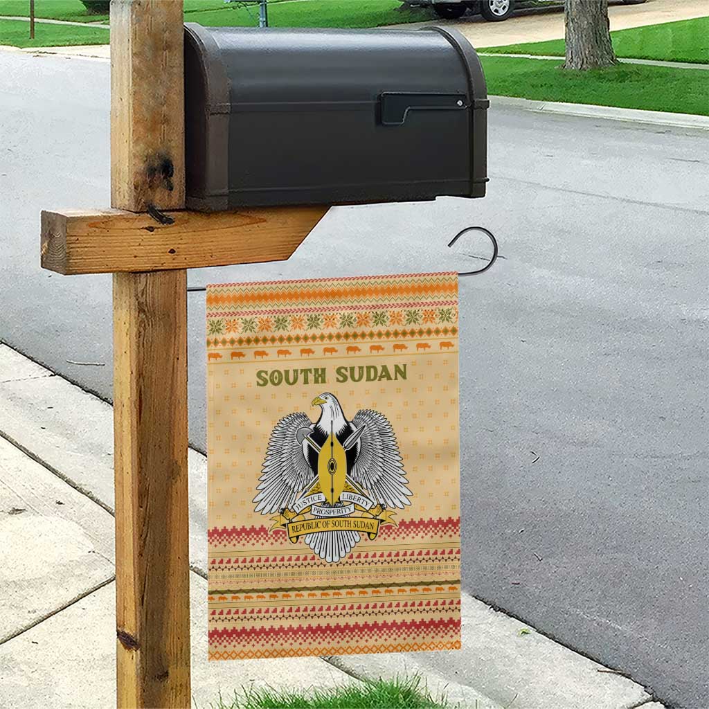 South Sudan Christmas Garden Flag Beige Tribal Pattern, National Emblem, and Green Star Motif