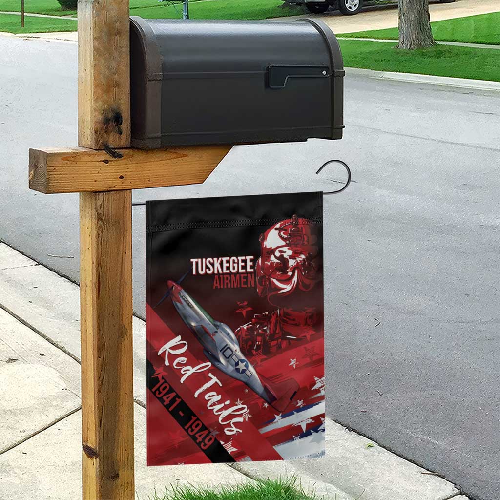 Tuskegee Airmen Red Tails Garden Flag Straighten Up and Fly Right - Black Red