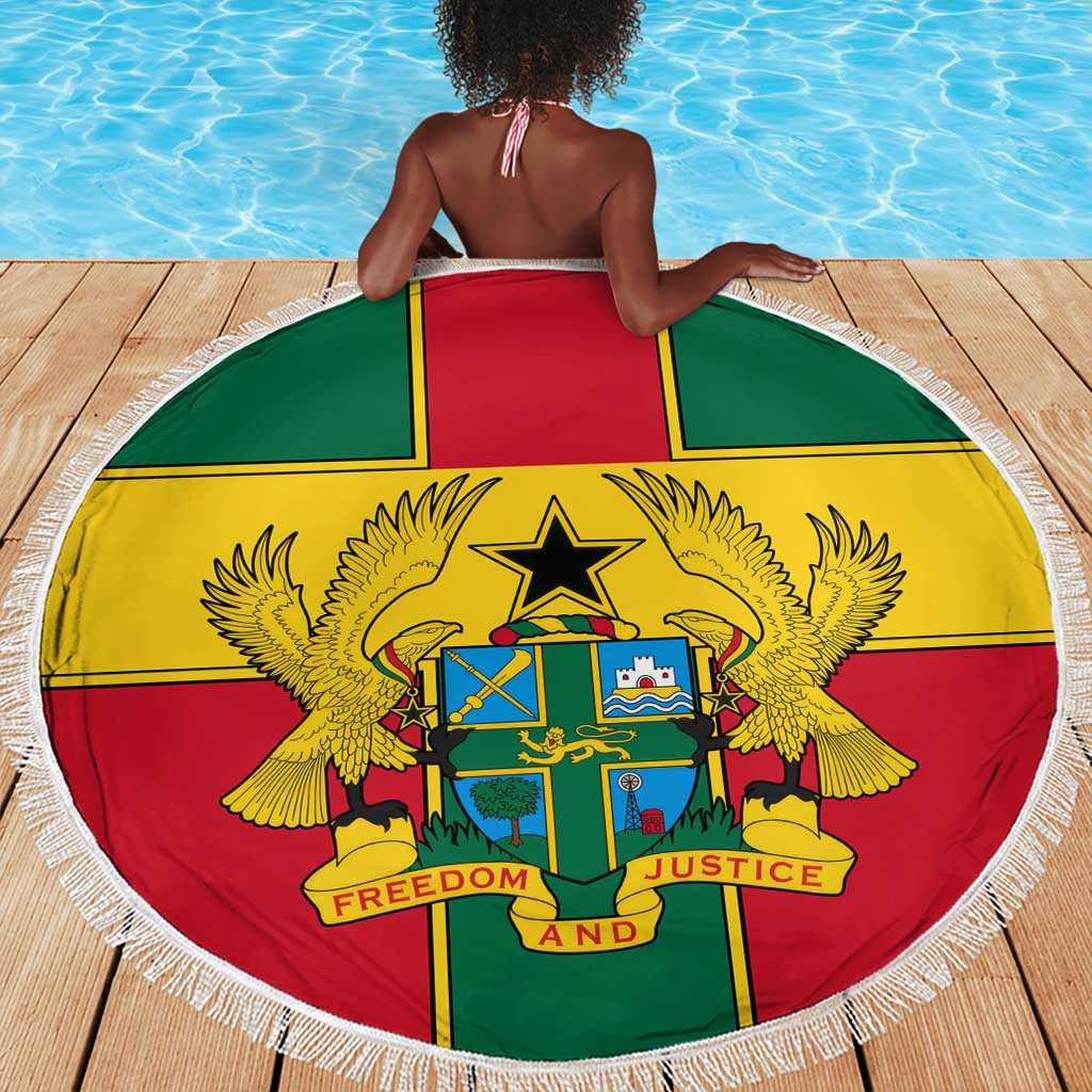 African Ghana Beach Blanket Flag with Coat of Arms Simple Design