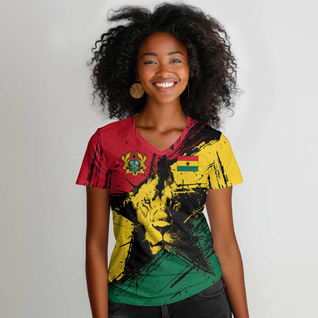 Afro Ghana Lion Women V-Neck T-Shirt Star Grunge Style TS04