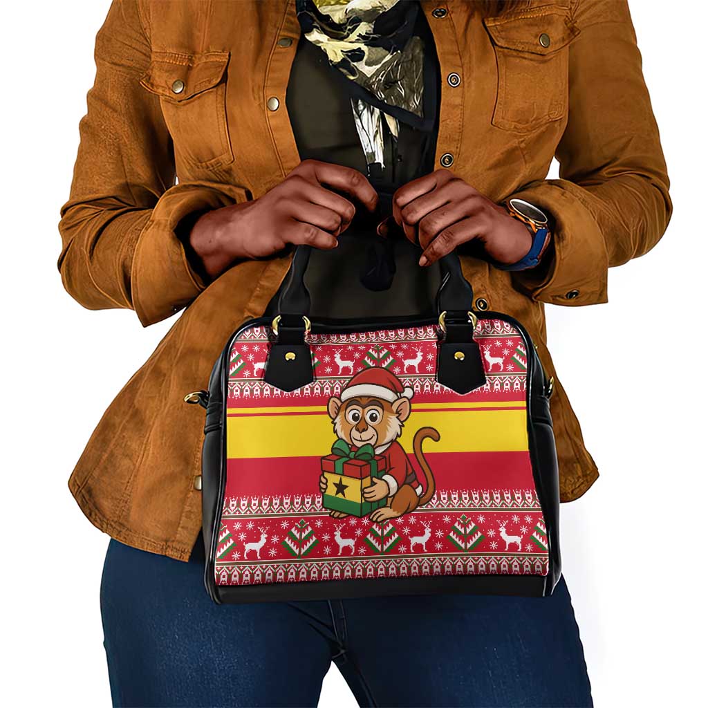 Ghana Christmas Shoulder Handbag Monkey Holding Gift Ghana Map and Festive