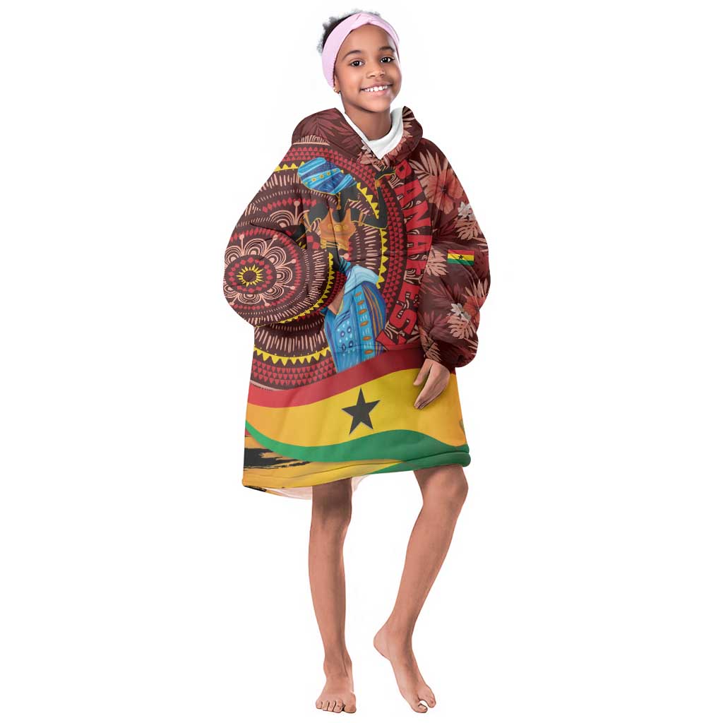 Panafest Kid Wearable Blanket Hoodie Ghana Tropical African Pattern
