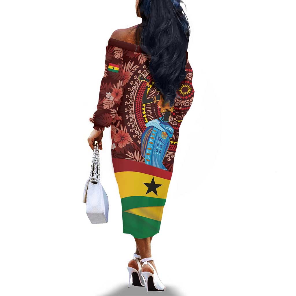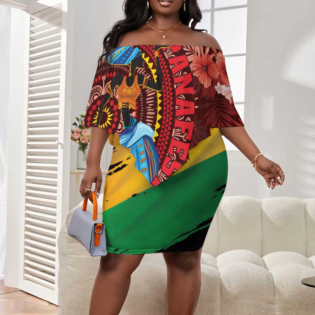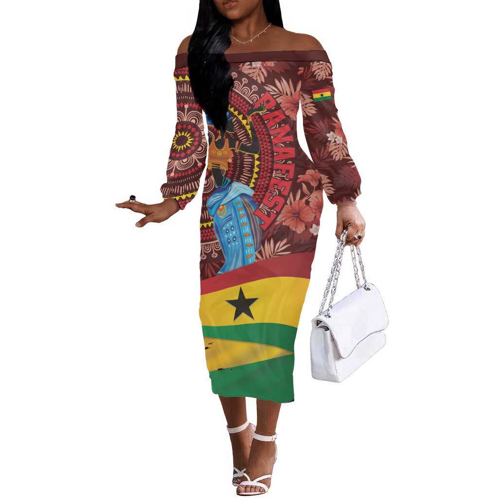Panafest Off The Shoulder Long Sleeve Dress Ghana Tropical African Pattern